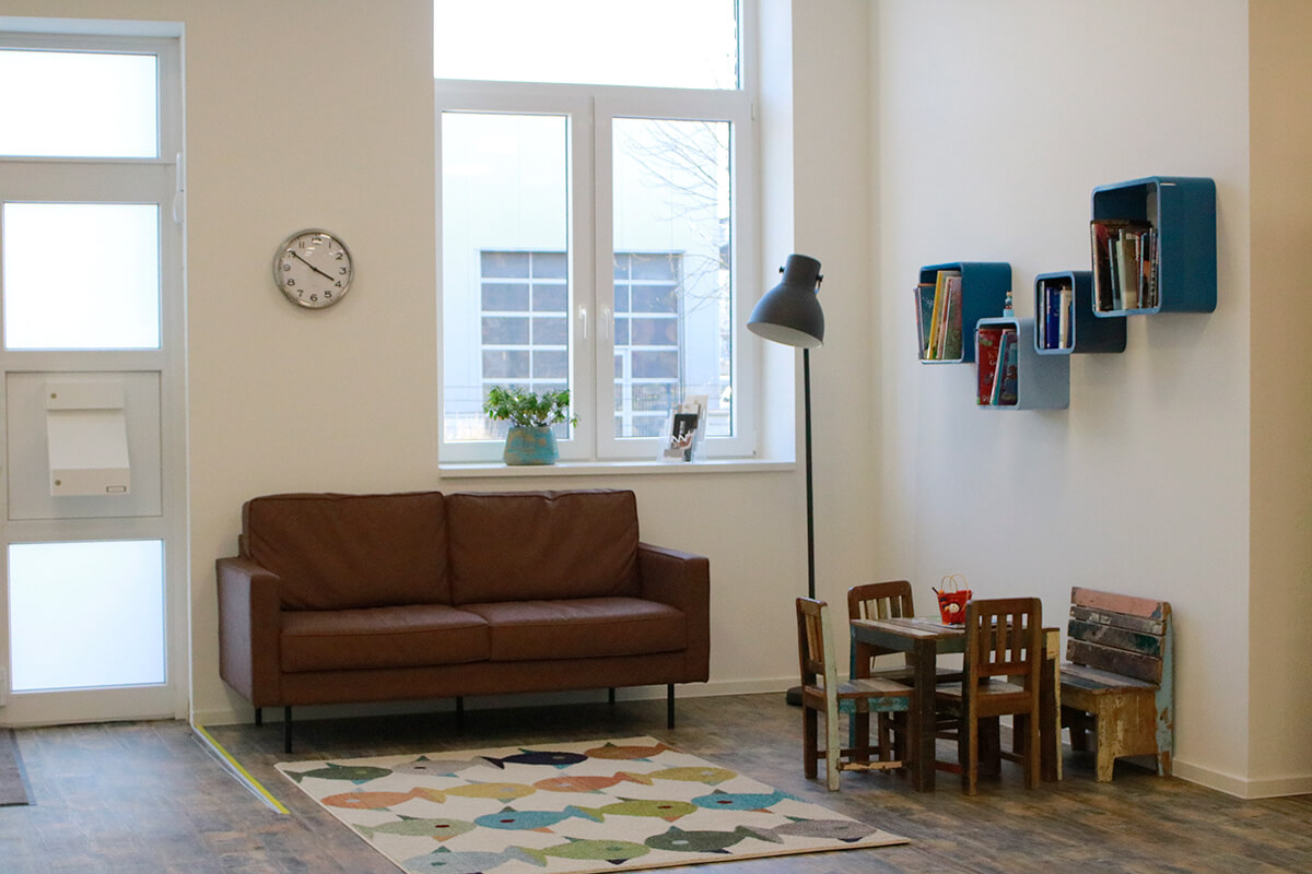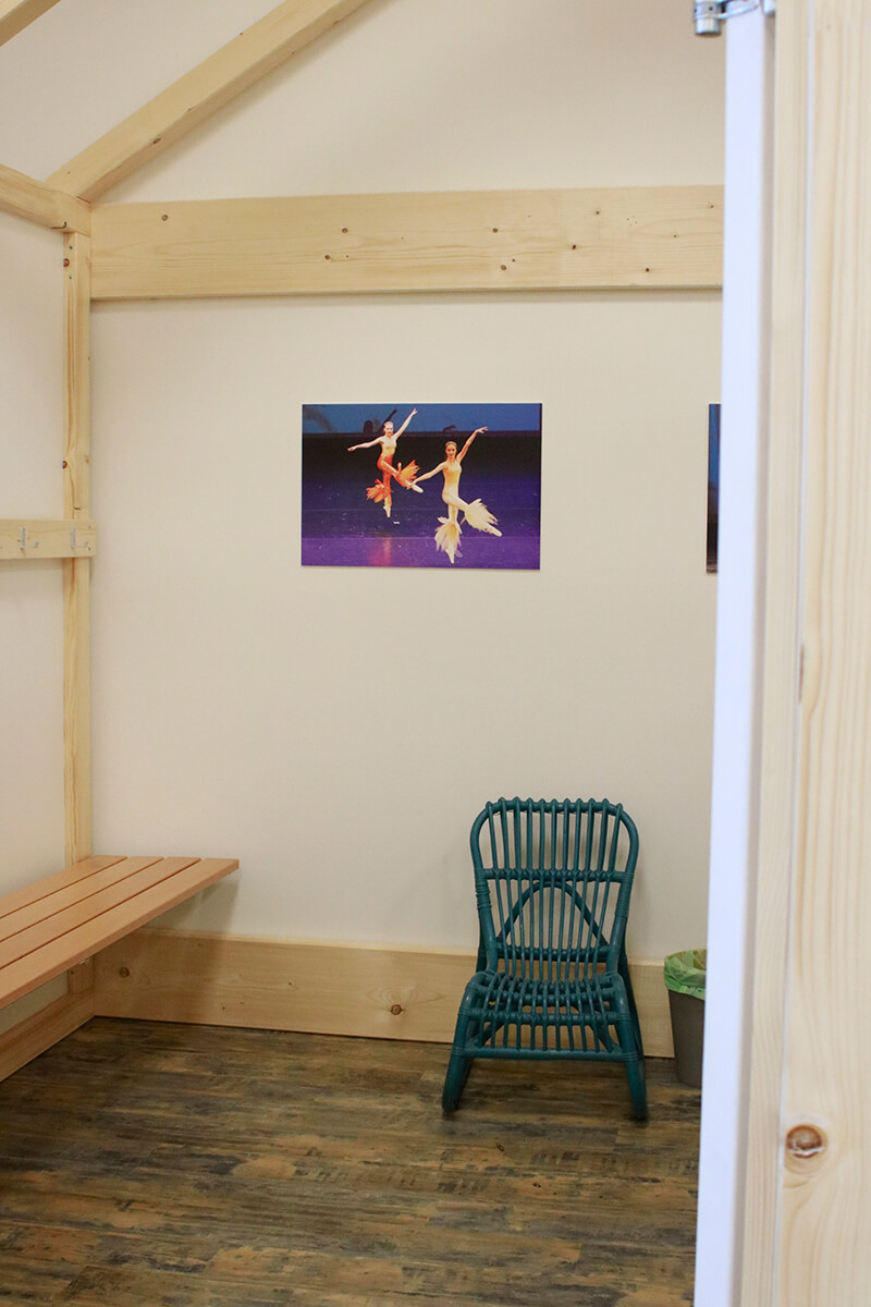 Im großzügigen Aufenthaltsbereich befinden sich die drei Umkleiden und es gibt viel Platz mit Spielen für Eltern/Großeltern und Geschwister. Sanitätsräume mit Wickelmöglichkeit, Küche und Lehrerzimmer runden unsere fast 500 Quadratmeter große Ballettschule ab. Eigene kostenfreie Parkplätze direkt vor der Tür und ein kurzer Fußweg zum Hauptbahnhof erleichtern die Anfahrt.